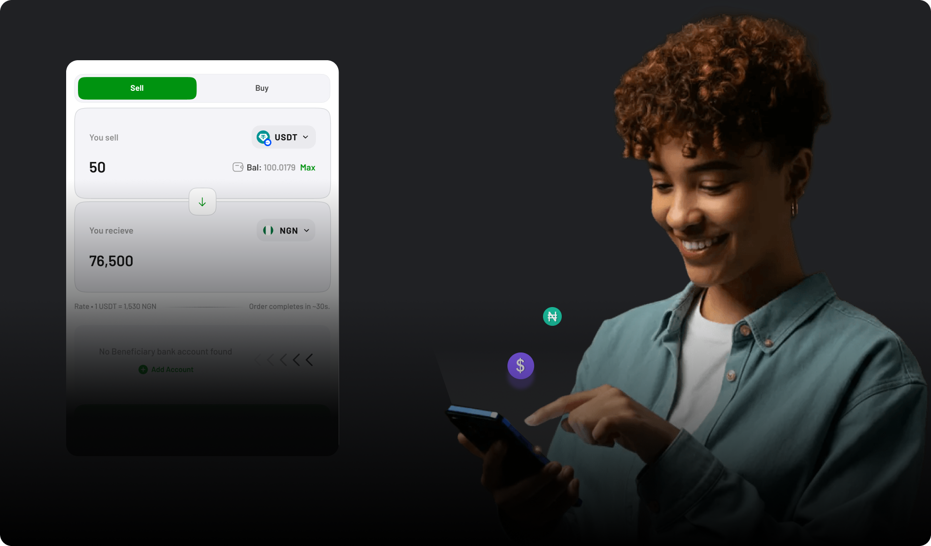 On/off-ramp stablecoins (e.g., USDC, cNGN, USDT) invisibly to your users